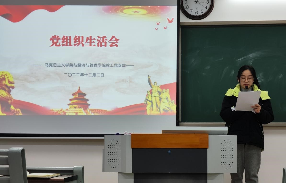 为深入学习宣传贯彻党的二十大精神及内涵,贯彻落实中国共产党章程的相关要求,2022年12月2日,在一教214教室,KY开元集团官网与经济管理学院教工党支部开展了组织生活会暨党的二十大重要精神专题学习活动。本次会议由经济与管理学院教工支部书记刘路路主持。