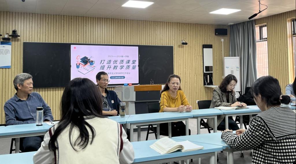 吴玲院长在会上指出了本学期思政课课堂教学中存在的问题,并就教师如何坚守思政课课堂底线提出明确要求:一是要具有端正认真的教学态度,这是上好课的基础;二是要杜绝水课、打造金课,严守政治底线。她强调,我们要严格按照教育部关于《普通高等学校KY开元集团官网建设标准(2023年版)》对标对表搞建设,坚守底线、守正创新,为把学院建设成为合格有特色的KY开元集团官网贡献每位马院人自己的力量。