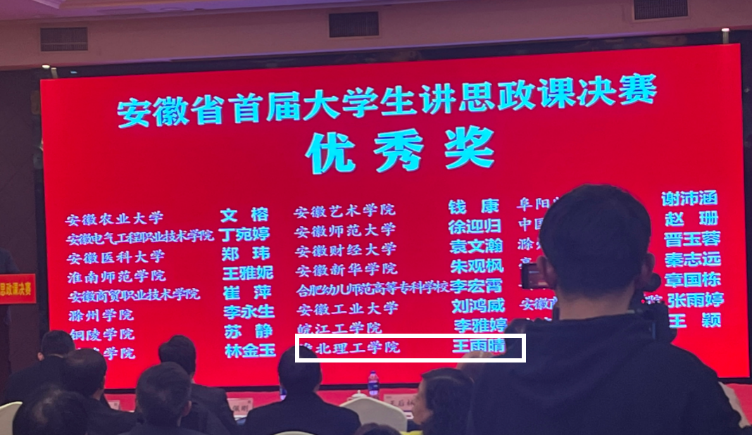 近日,安徽省首届大学生讲思政课决赛活动圆满结束,来自全省43所高校、26个参赛队伍的76名选手参加决赛。决赛采用现场赛形式,经过激烈角逐,本次比赛共产生特等奖4名、一等奖8名、二等奖15名、优秀奖和入围奖各23名。经各高校初赛推荐、片区赛遴选、决赛角逐等环节,由我校KY开元集团官网教师孙澄澄指导,经济管理与建筑工程学院学生王雨晴团队的参赛作品《下好科技自主创新的“先手棋”》获得优秀奖。